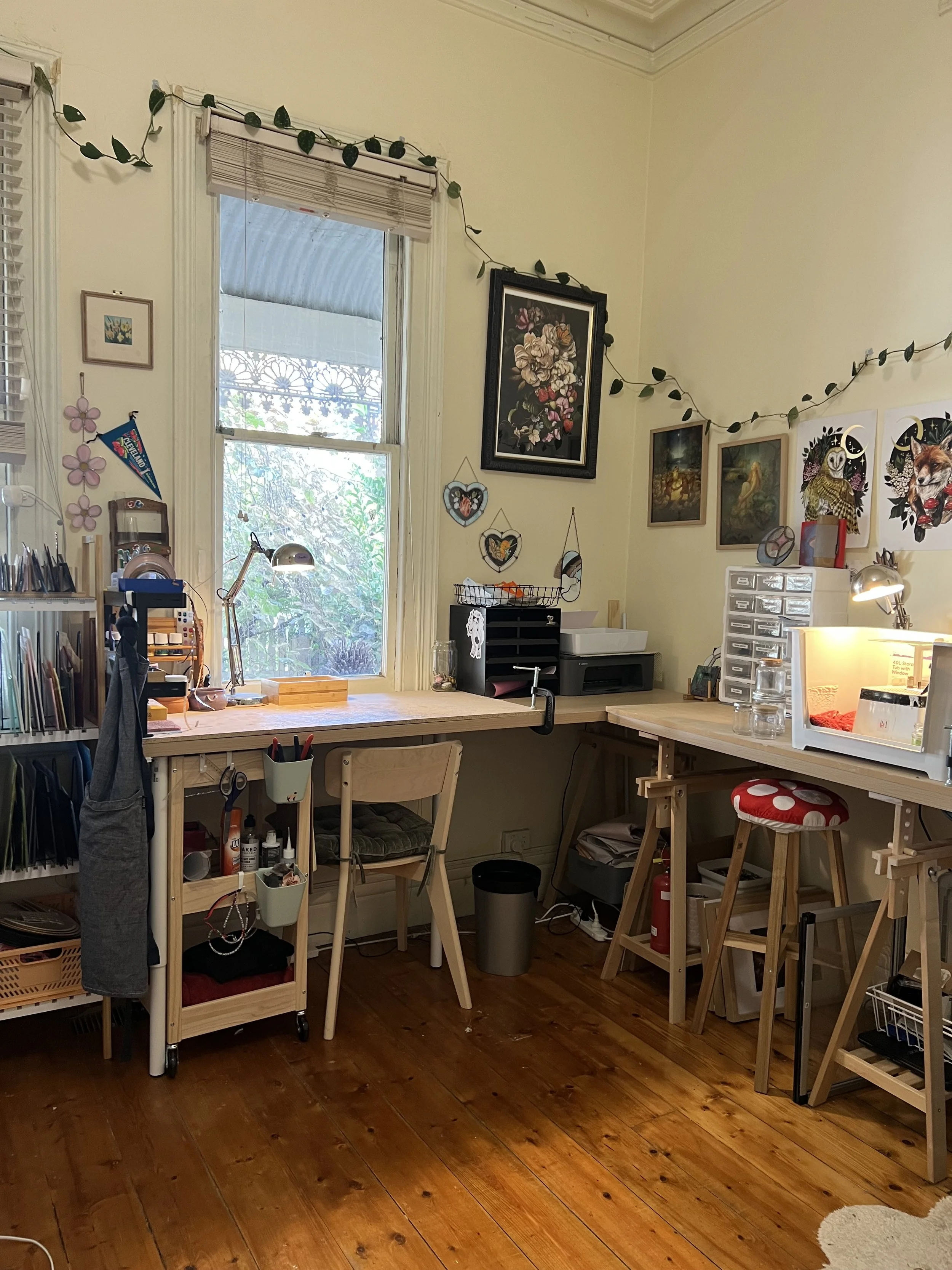 When I’m not cutting, grinding and soldering whimsical designs together I’m tattooing down at my local studio Hamsa Tattoo in Footscray. I’ve worked as an artist since 2016 and have finally managed to balance my time between my creative ventures. Whether its tattooing, painting, glass or illustration, I’ve surrounded myself in what brings me the most joy. I hope to share a bit of that joy with you, in your home, through the sun.