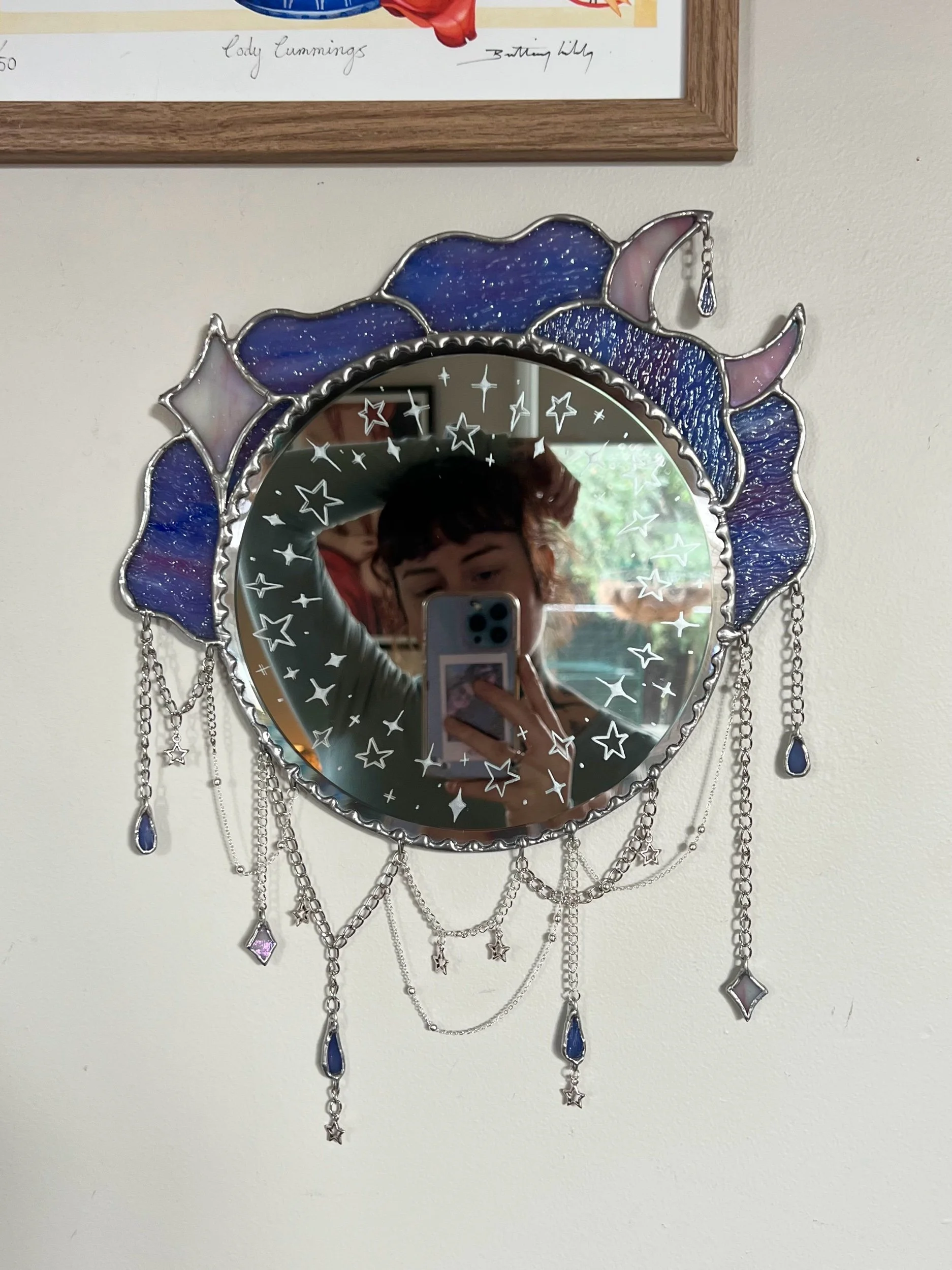 Categories: All Mirrors Glass Panels Cabinets & Such Keyrings Lanterns Mirrors Blue $150.00 Sold out Shooting Stars $280.00 Baby Gay $150.00 Moth Face $250.00 Where you’ll find me Email